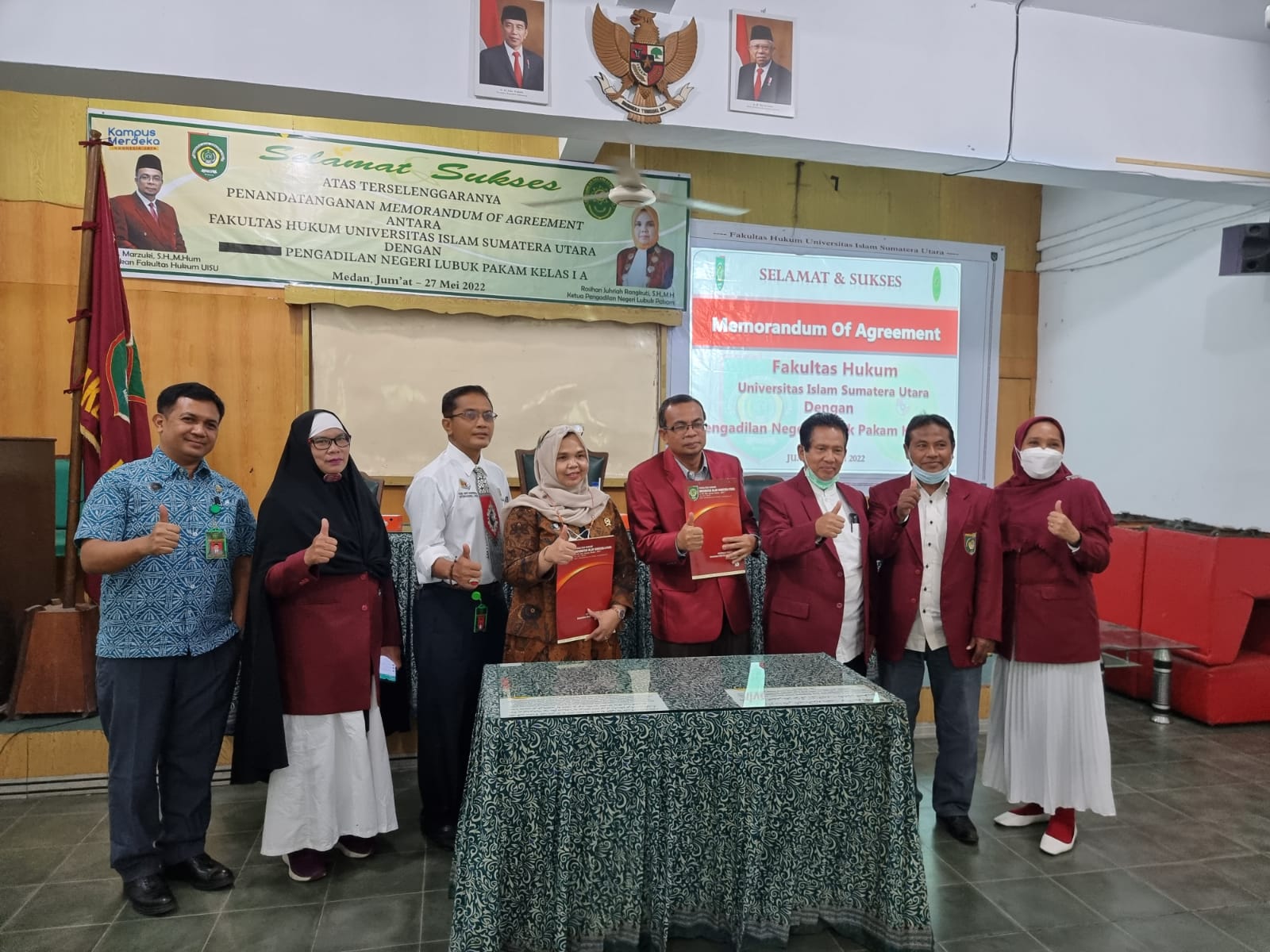 Dalam rangka peningkatan kualitas pelayanan kepada Masyarakat serta meningkatkan kompetensi Mahasiswa, Fakultas Hukum UISU melaksanakan Kerjasama dengan Pengadilan Negeri Lubuk Pakam kelas I A, kegiatan ini dilaksanakan pada Hari Jum’at Tanggal 27 Mei 2022 bertempat di Aula Fakultas Hukum UISU Medan yang dihadiri oleh Ketua dan Wakil Ketua Pengadilan Negeri Lubuk Pakam Kelas I A beserta jajarannya.