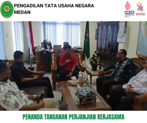 Ketua Pengadilan Tata Usaha Negara Medan, Bapak I Nyoman Harnanta, S.H., M.H. menyambut baik penandatanganan kerjasama ini, harapan beliau kegiatan ini nantinya dapat menjadi sarana bagi Pengadilan Tata Usaha Negara untuk melakukan sosialisasi mengenai perkembangan proses persidangan pada saat ini dan di masa yang akan datang, kegiatan ini juga merupakan implementasi dari Pengabdian Kepada Masyarakat bagi Pengadilan Tata Usaha Negara kepada seluruh komponen masyarakat.