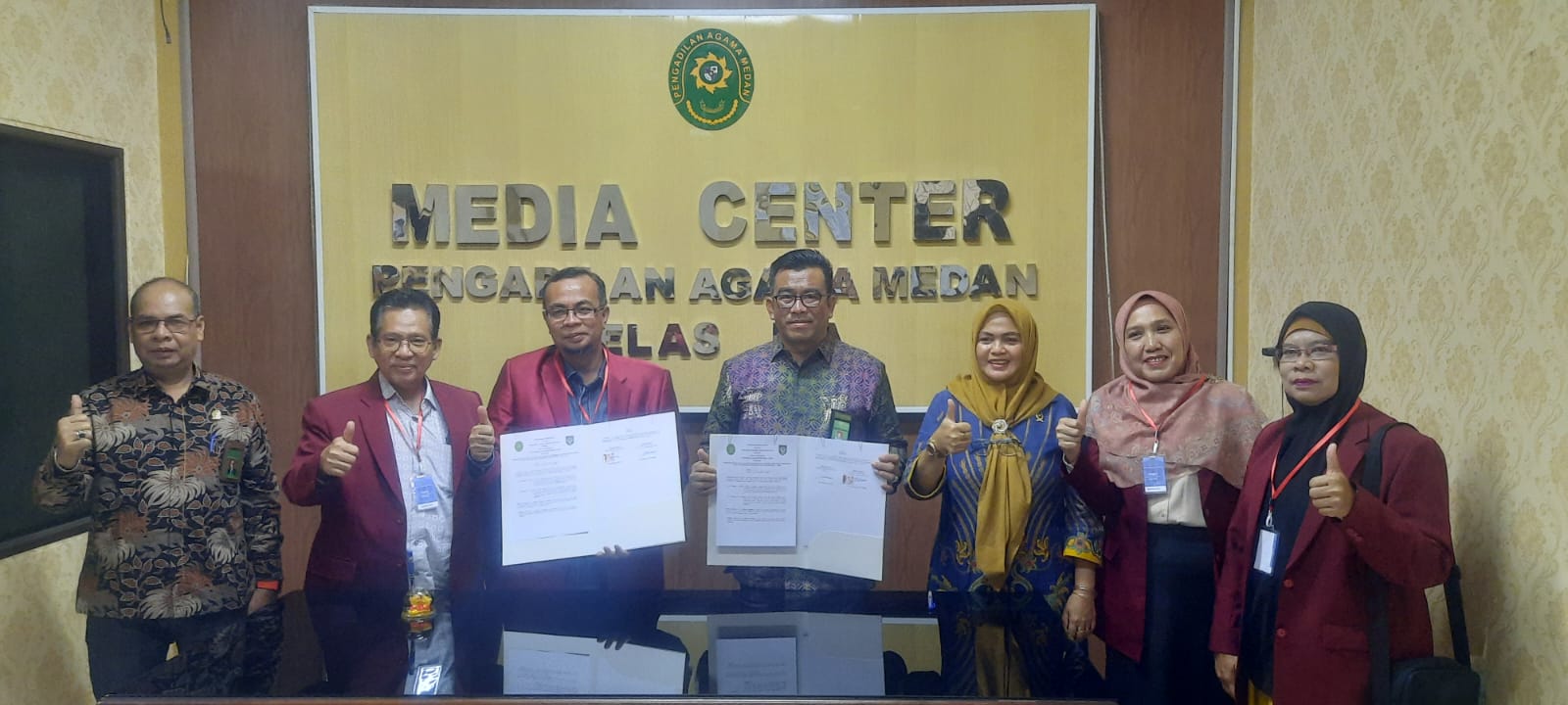 Pengadilan Agama Medan Kelas I-A tandatangani Kerjasama dengan Fakultas Hukum Universitas Islam Sumatera Utara, yang dilaksanakan pada Hari Kami 03/11/2022 bertempat di Pengadilan Agama Medan Kelas I-A Jalan Sisingamangaraja Km. 8,8 nomor 198 Medan, kegiatan ini dihadiri langsung oleh oleh Bapak Drs. Muslim, S.H., M.A. selaku Ketua dan Ibu Dr. Hj. Sakwanah, S.Ag., S.H., M.H. serta Dekan Fakultas Hukum UISU Bapak Dr. Marzuki, S.H., M.Hum. beserta pimpinan lainnya.