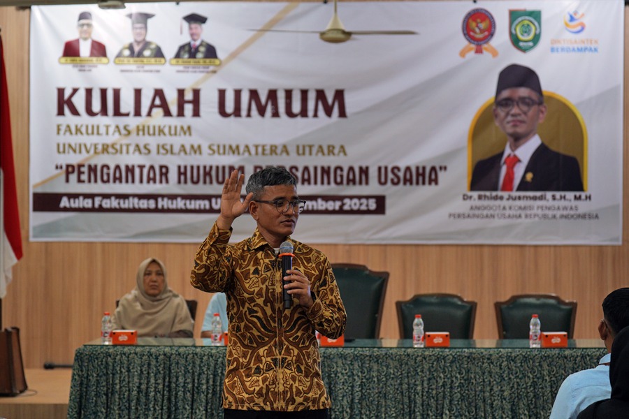 Medan, 2 Desember 2025 — Fakultas Hukum Universitas Islam Sumatera Utara (UISU) menyelenggarakan kegiatan kuliah umum dengan tema “Pengantar Hukum Persaingan Usaha” pada Selasa, 2 Desember 2025, bertempat di Aula Fakultas Hukum UISU. Kegiatan ini merupakan implementasi kerja sama kelembagaan antara Komisi Pengawas Persaingan Usaha (KPPU) dan Fakultas Hukum UISU dalam rangka meningkatkan kualitas pemahaman akademik mahasiswa mengenai hukum persaingan usaha di Indonesia.